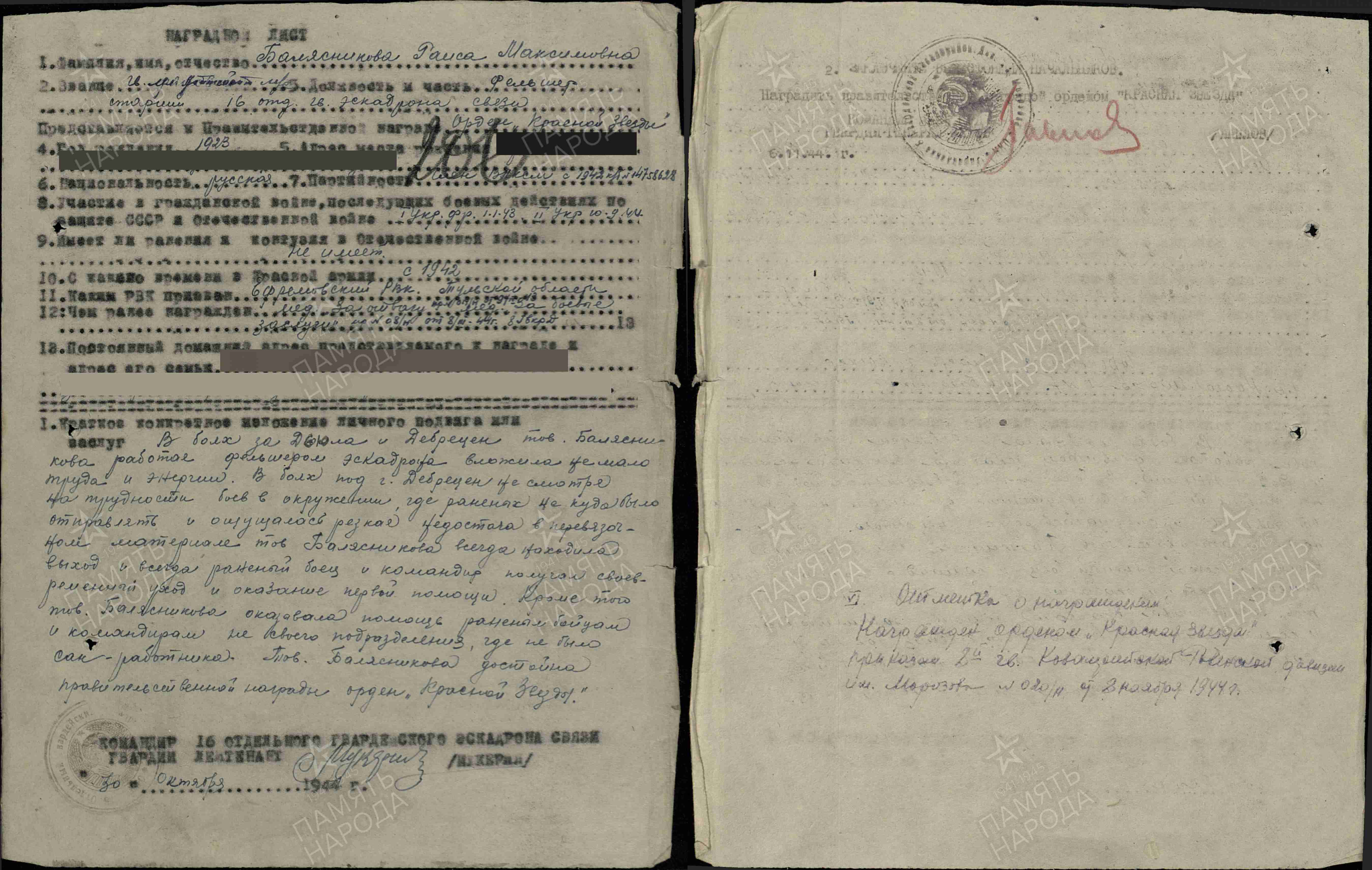 ★Orden de la Estrella Roja (21.05.1943, №20, fechas de hazañas: 04.03.1943-30.03.1943) — Serzhant